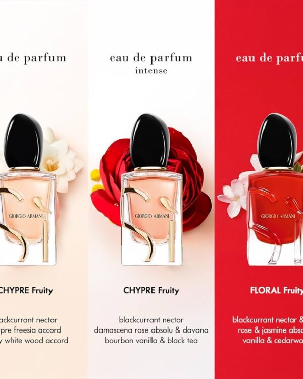 Отдаваме почит към силата да казваш „да“. Sì е избор, воден както от разума, така и от емоциите. Да кажеш Sì означава да кажеш „да“на страстта, на свободата, на любовта и на себе си, насърчава изразяването на съвременната женственост. Новият скъпоценен дизайн на рефил флакона е създаден, за да устои. Изработен чрез неповторими стъкларски техники, емблематичната форма на флакона Sì е украсена с релефно златно лого Sì. Новият аромат SÌ EAU DE PARFUM INTENSE придава на Sì по-топъл аспект, комбинирайки нектар от касис с кадифена флорална сърцевина и чувствен ванилов букет. Съставките, които определят SÌ EAU DE PARFUM INTENSE, са извлечени с помощта на някои от най-модерните, фини методи, за да се създаде неповторим отличителен аромат. SÌ EAU DE PARFUM INTENSE е уловен в рефил флакон за многократно пълнене, който може да се рециклира. Всички размери на новия аромат са рефил и могат да се пълнят многократно, допълват се с лесен жест без риск от разливане, благодарение на на механизма.